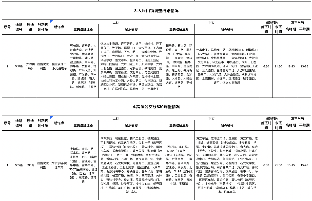 四、大岭山镇调整后公交线路情况