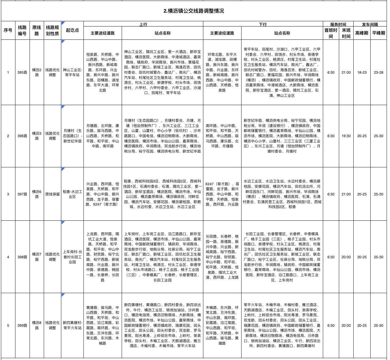二、横沥镇调整后公交线路情况