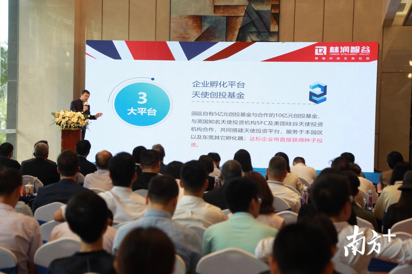 10月25日,“林润智谷·国际同步”中英产业创新基地揭牌仪式暨种子计划英国赛区半决赛项目路演在松山湖林润智谷产业园举行,这也是东莞首个落地的中英产业创新基地。活动上,由林润智谷与英国顶级天使投资机构Startup Funding Club (以下简称SFC) 合作共建的中英产业创新基地正式揭牌。