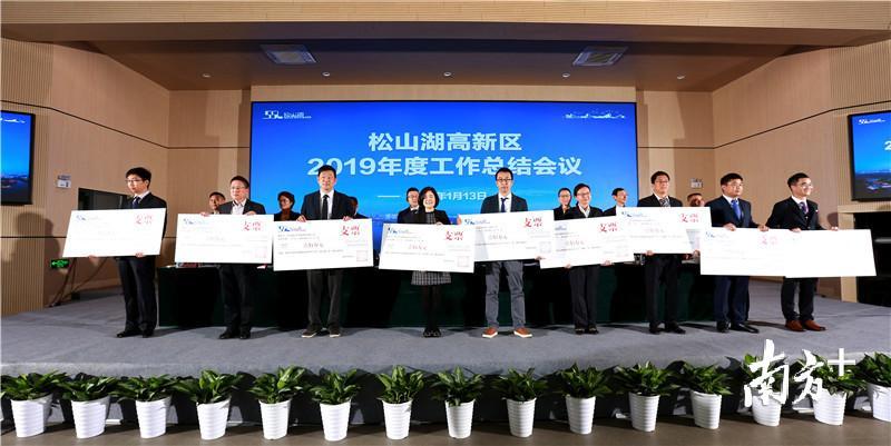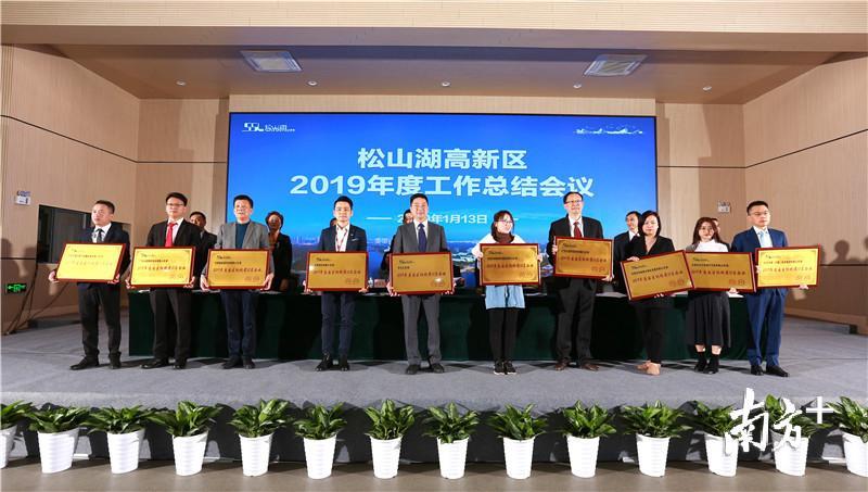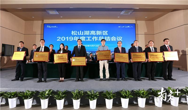 1月13日下午,东莞松山湖高新区2019年度工作总结大会在松山湖召开。会上,松山湖党工委、管委会对2019 年度园区国家级孵化器、先进新型研发机构、创新创业领军人才、纳税前10名企业、固定资产投资前5名企业、先进倍增企业、园区立项资助企业研发机构、“四上”主营业务收入前10名企业、出口额前10名企业、安全生产先进企业、先进金融机构及金融类服务企业等单位和个人予以通报表扬。