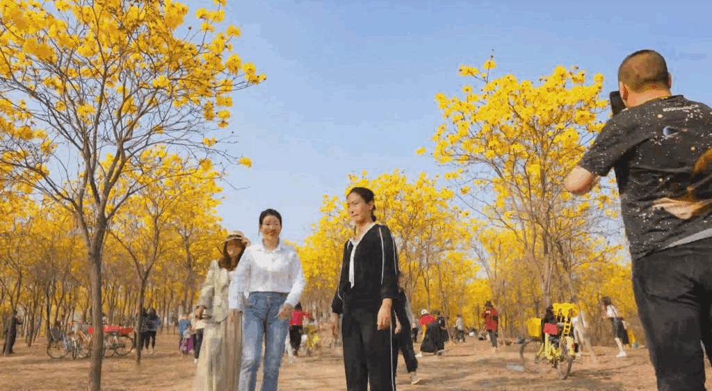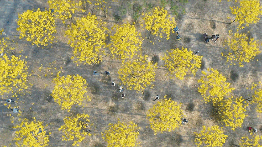 二月是黄花风铃木盛开的季节,也是松山湖滨湖景区(松湖烟雨)最热闹的时候。绿水青山间,大片璀璨金黄的花海尽收眼底,引得游客争相在此“打卡”。