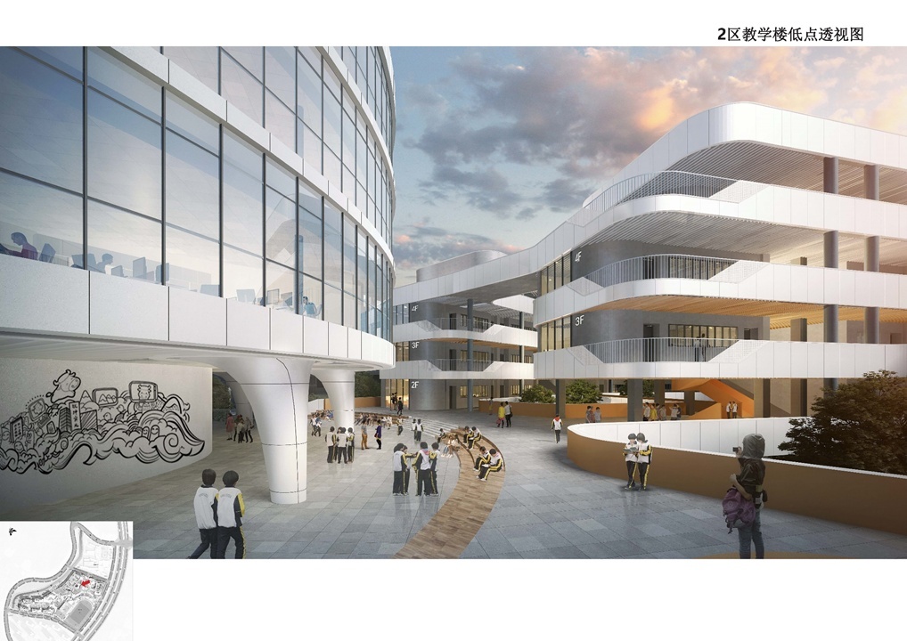 据了解,学校设计方案将致力于打造契合未来教育理念的学习空间创新样式,总体理念是以学生为中心,每一个孩子都是一颗未来的“种子”,蕴藏着美好成长的无限可能。尤其是建筑布局将图书馆设计成一颗种子的形象,作为未来学习资源中心,以此为起点延伸布局;空间打造方面,综合考虑了材料成本控制、课程空间融合、智能绿色环保、功能综合利用等因素,突出开放性、融合性、复合性和未来感,建造人与课程、人与自然、人与建筑相融合的多样态空间。