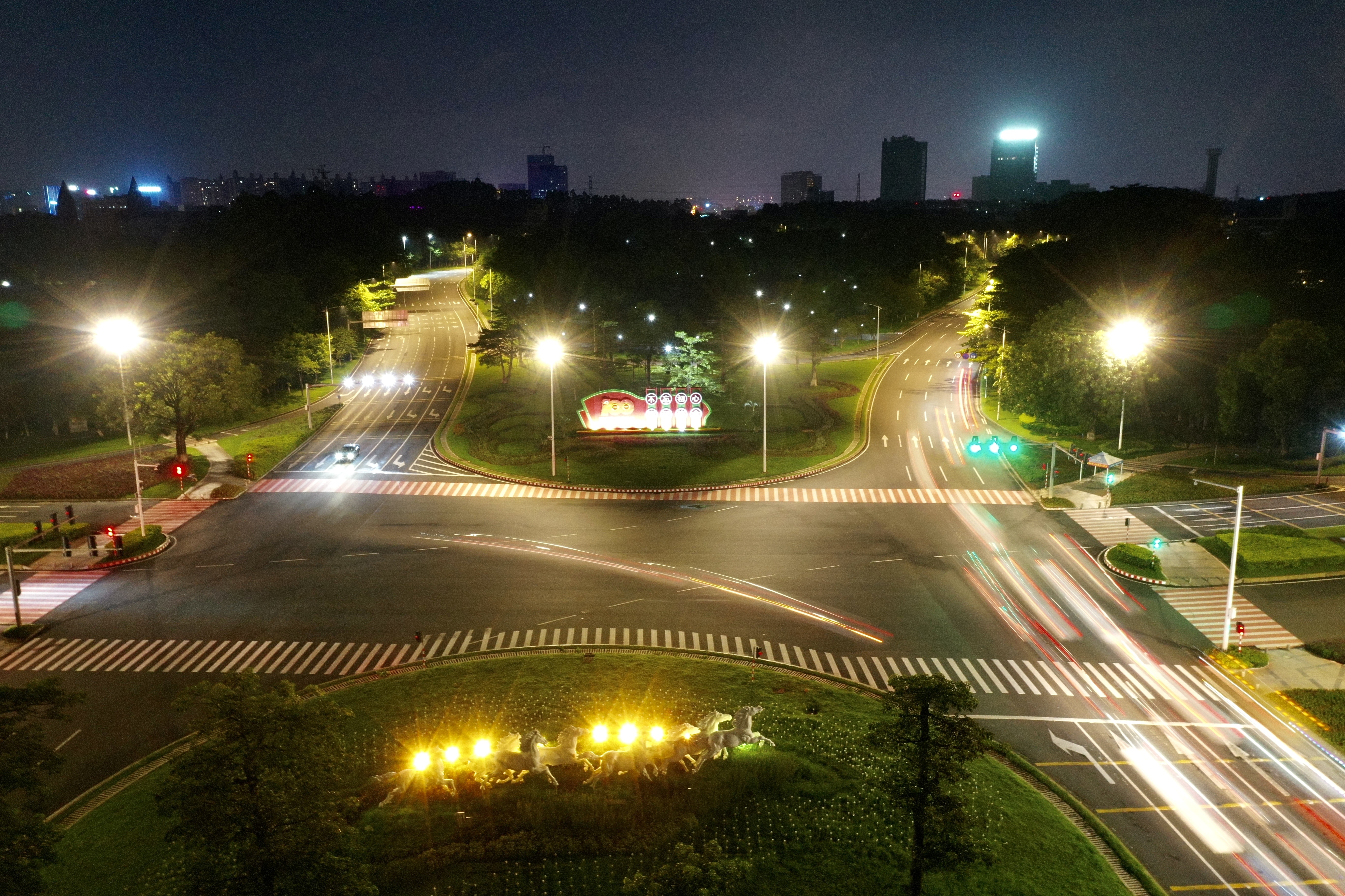 松山湖新城大道附近夜景。