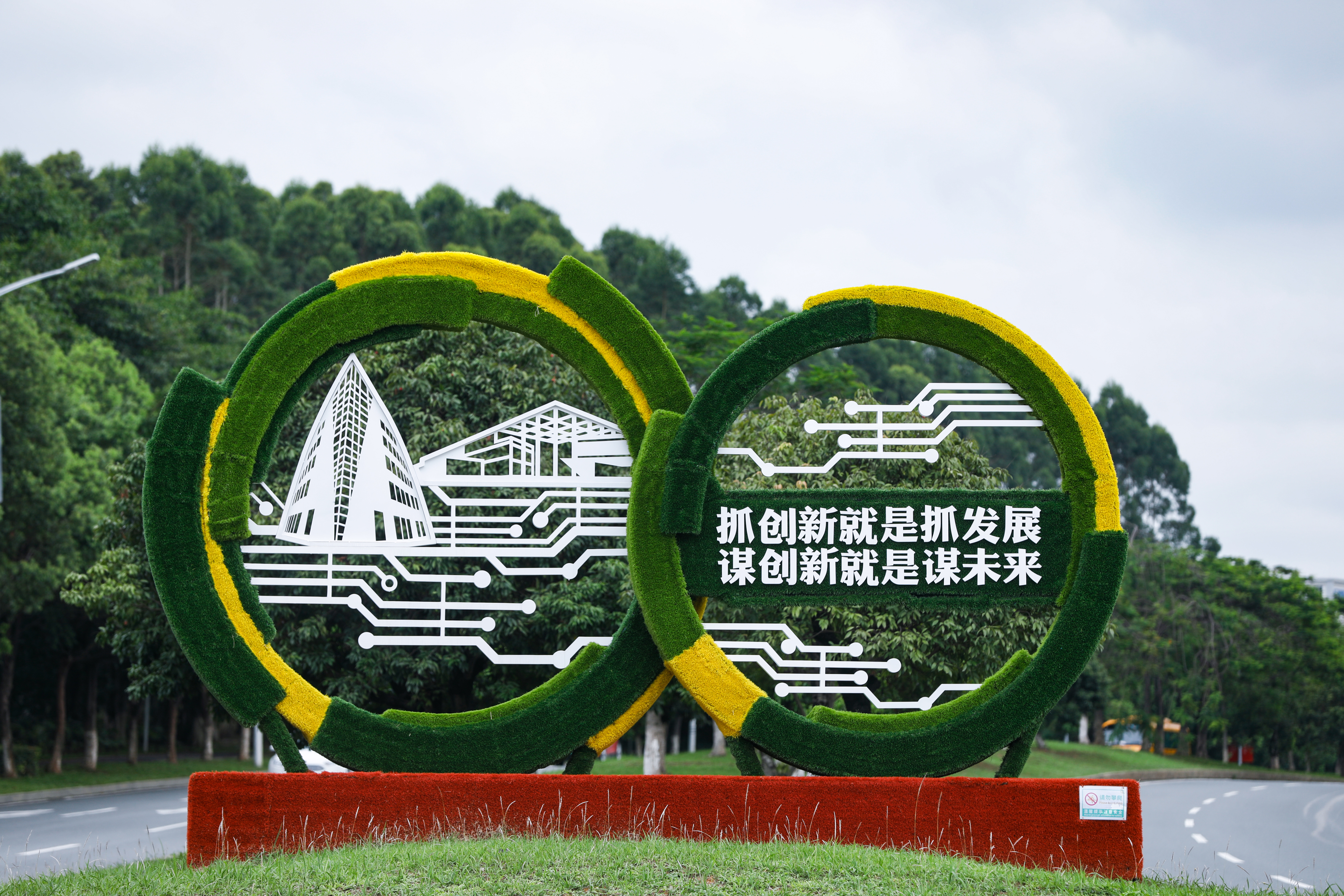 环湖路展示宣传标语——“抓创新就是抓发展 谋创新就是谋未来”。