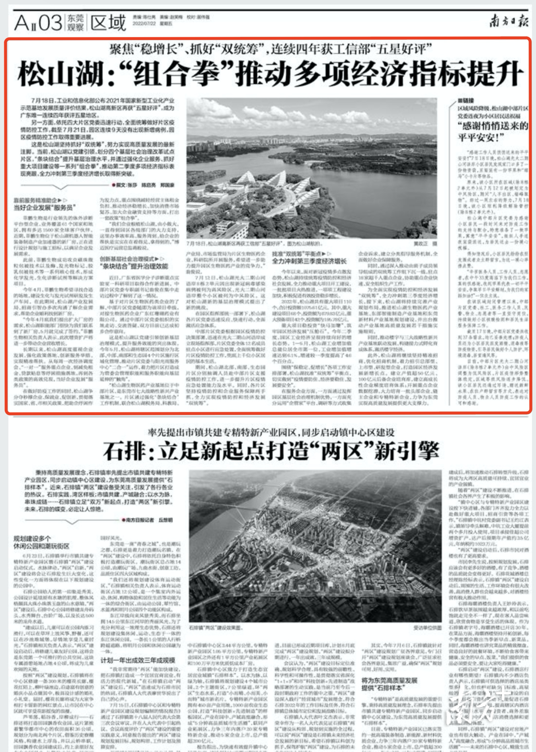 这是松山湖坚持抓好“双统筹”,努力实现高质量发展的最新注脚。当前,松山湖以党建引领,划分四个基层社会治理改革试点片区,“条块结合”提升基层治理水平,并通过强化企业服务、抓好重大项目建设等一系列“组合拳”,推动第二季度多项经济指标表现亮眼,全力冲刺第三季度经济增长取得新突破。