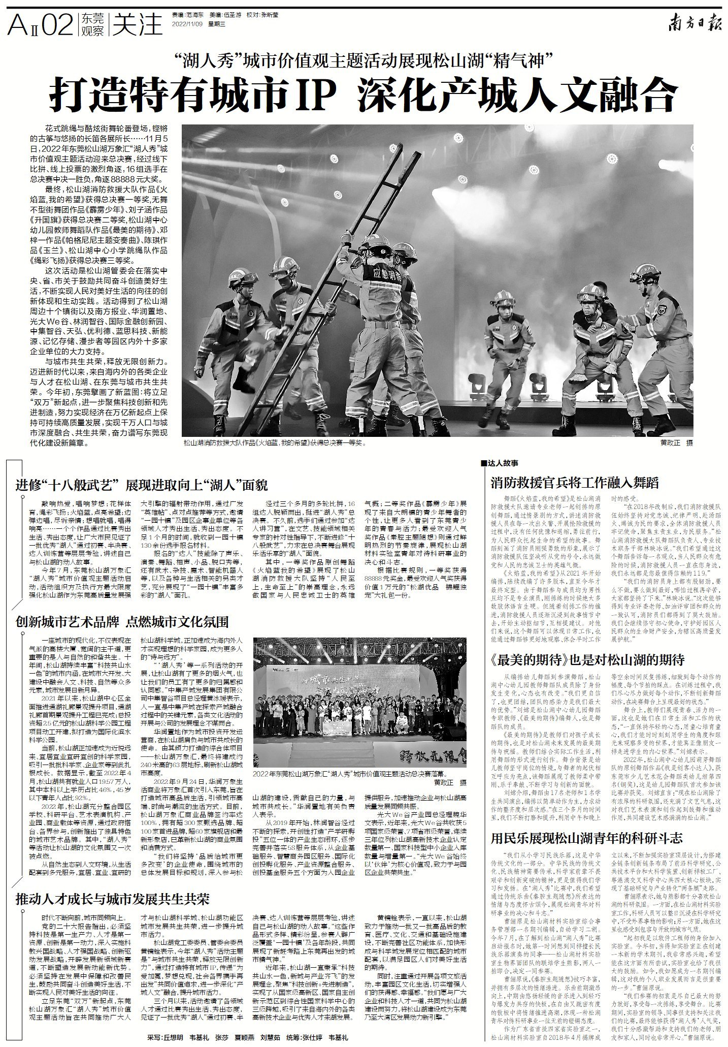 2022年,松山湖充分整合园区学校、科研平台、艺术表演机构、产业园、商业载体等资源,通过政府搭台、各界参与,创新推出了独具特色的城市艺术品牌。其中,“湖人秀”等活动让松山湖的文化氛围又一次被点燃。