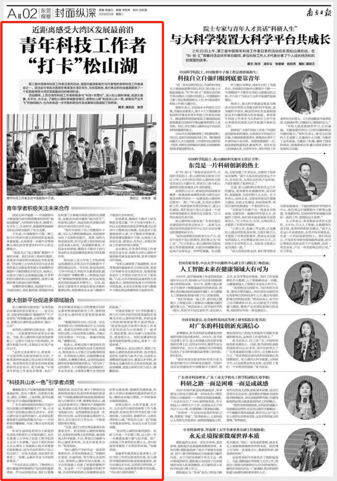 走访期间,许多青年科技工作者结合自身专业,积极关注松山湖科学城创新进展及发展环境,思考可能的合作领域。