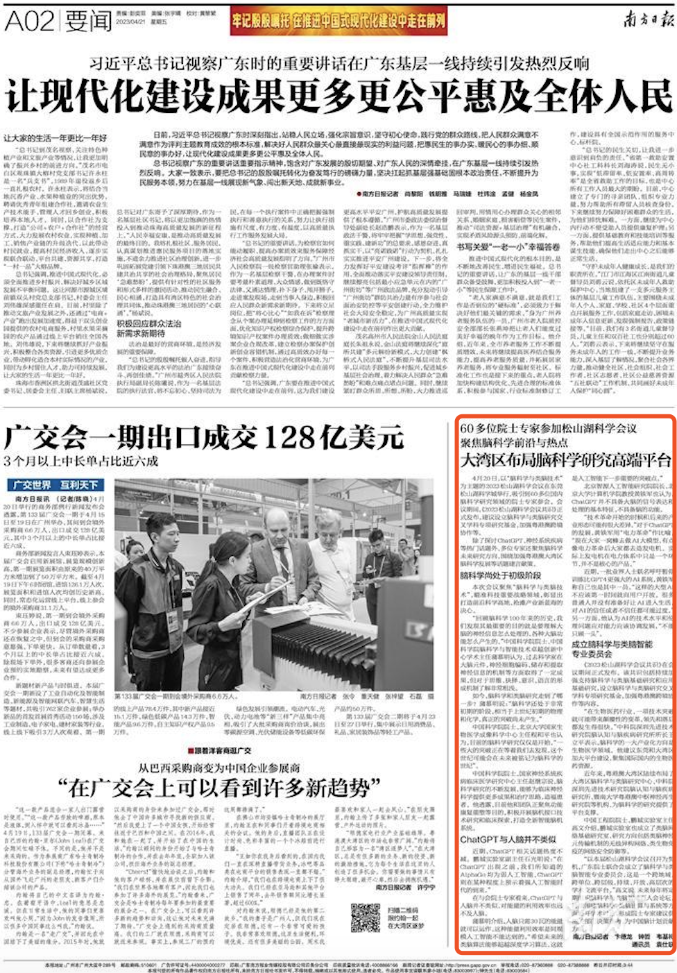 “以本届松山湖科学会议召开为契机,广东院士联合会成立了脑科学与类脑智能专业委员会,这是一个跨地域、跨单位、跨层级,持续、开放、高层次的学术交流平台。”高文说,未来每年将定期组织脑科学与类脑智能百人会论坛,持续围绕脑科学、类脑计算与系统等方面展开学术讨论,形成院士专家建议供相关部门决策参考,为中国脑计划贡献力量。
