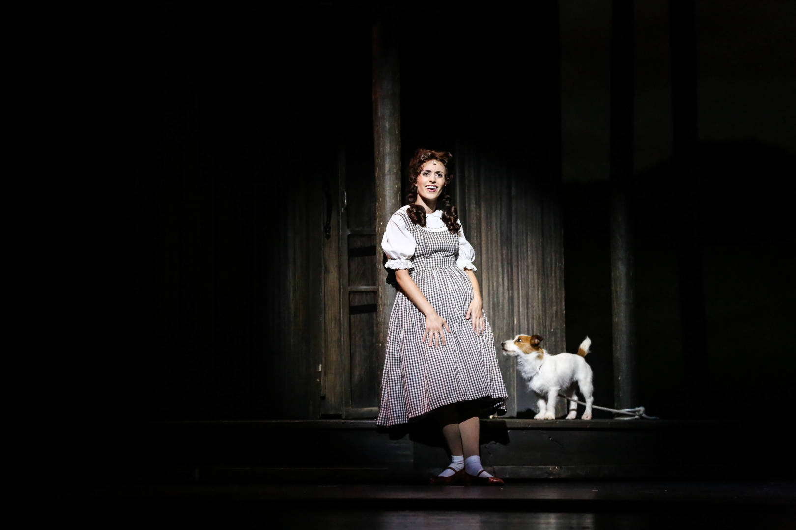 “演出前就开始和狗狗相处,让它能在我面前感到放松。在舞台上,当感到它有不安的情绪时,我就会把它抱得更紧”,扮演桃乐茜的演员萨拉•卡马拉塔这样与动物演员培养默契。