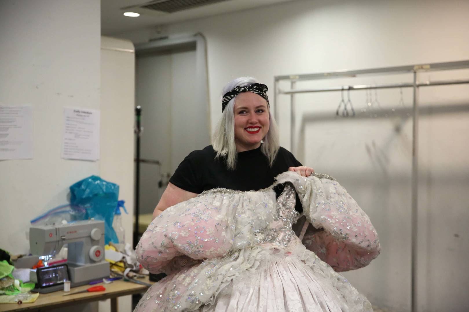 剧目的道具与服饰也是一大亮点。“演员有非常多的头饰,而且都挺重,不好带,每次换装都需要工作人员协助”,该剧的舞美指导向记者介绍。