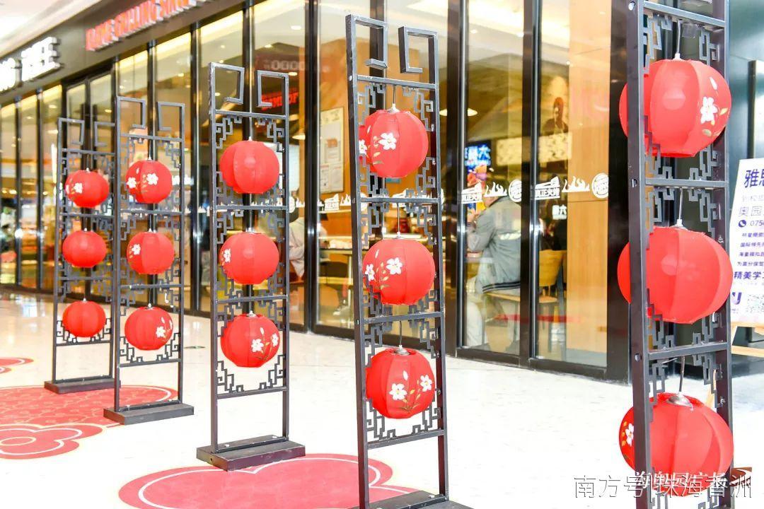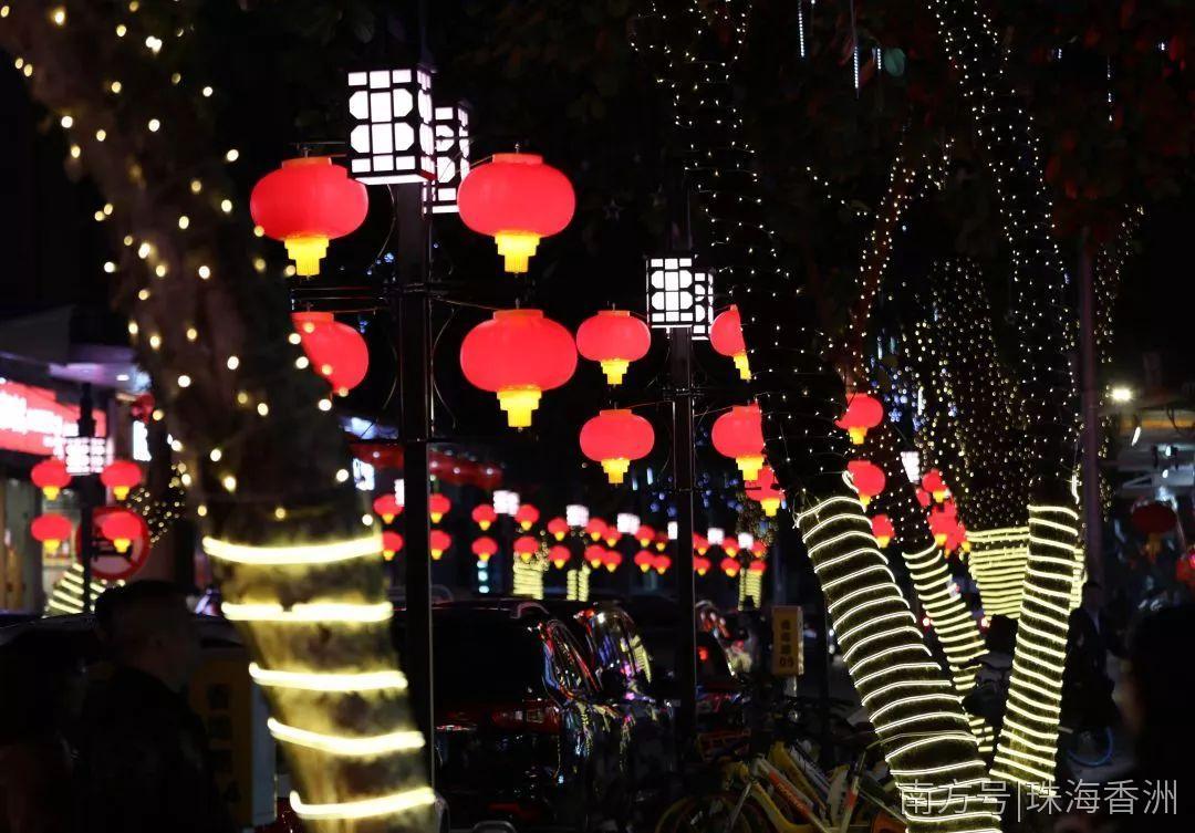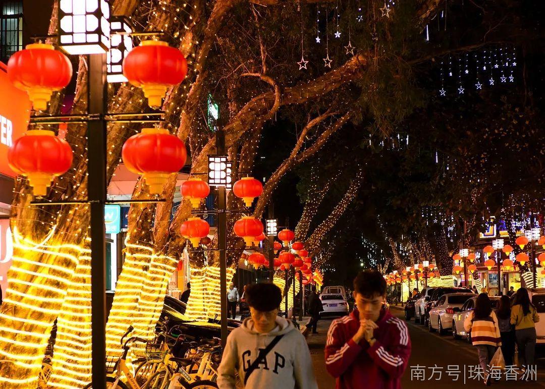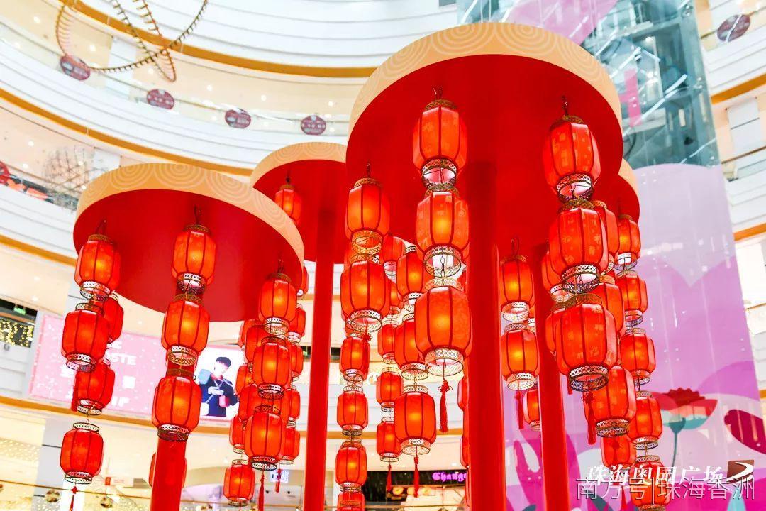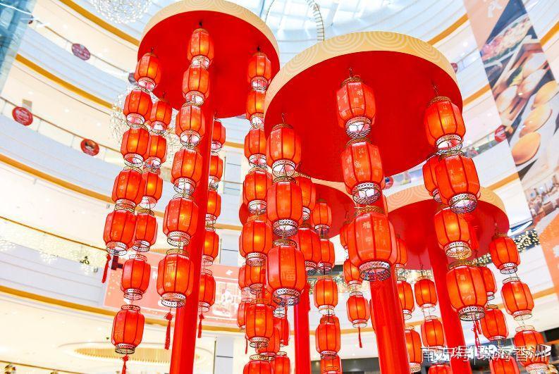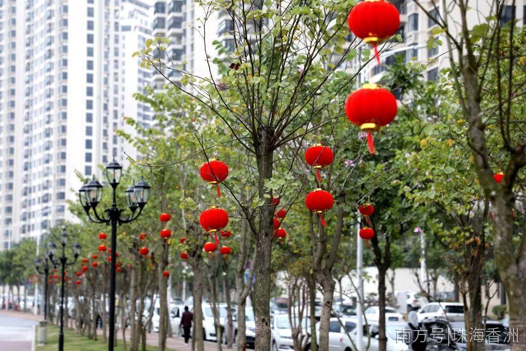 小红灯笼在绿树的衬托下格外鲜艳亮丽