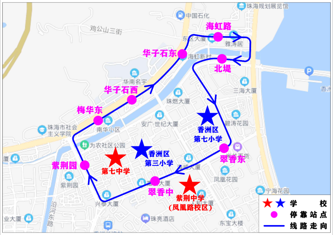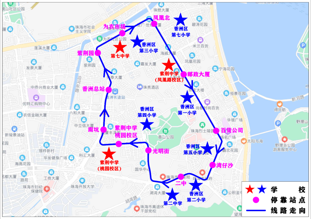 为治理校园交通拥堵,缓解学子通学出行压力。自9月1日开学日起,珠海新增6条勤学公交线路,共服务覆盖中心城区中小学28所,采取循环、不间断的运行方式,在早晨上学、傍晚放学期间,沿线的学生均可在任意站点上下,相互站点之间均可到达。