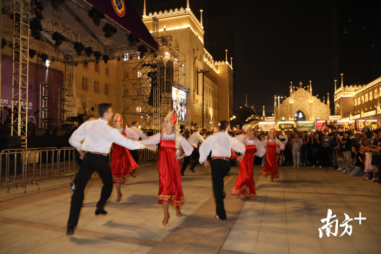 来自澳门的葡萄牙土风舞表演,把现场观众的热情带向高潮。现场观众加入舞蹈的队列中,与演员们一起载歌载舞,尽情感受欢乐的气氛。