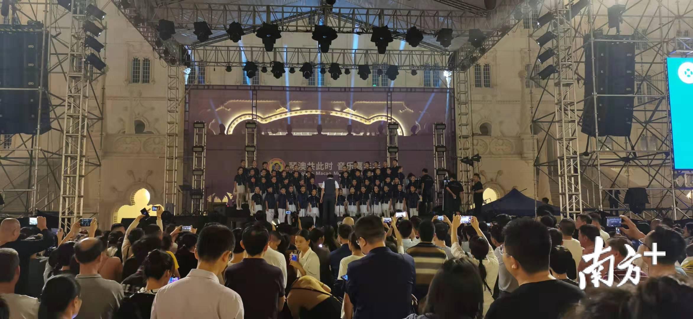 这首旋律优美简单、歌词朗朗上口的原创歌曲引起了现场观众的共鸣。《横琴的对面是澳门》由著名音乐家瞿琮作词,广东作曲家桑雨作曲。现场,横琴一小合唱团的小朋友用稚嫩而美好的童声,唱出琴澳两地一衣带水的温情。“在台上一点都不紧张,我们想唱的是对澳门的喜欢。”9岁的徐瑾华说,希望大家听到这首歌,可以多去澳门参观,澳门的人也可以多来横琴。