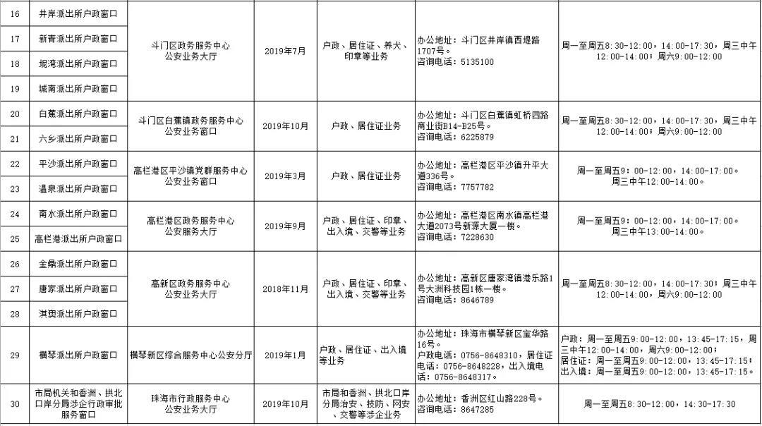此外,万山派出所、担杆派出所、桂山派出所仍保留户政业务窗口。
