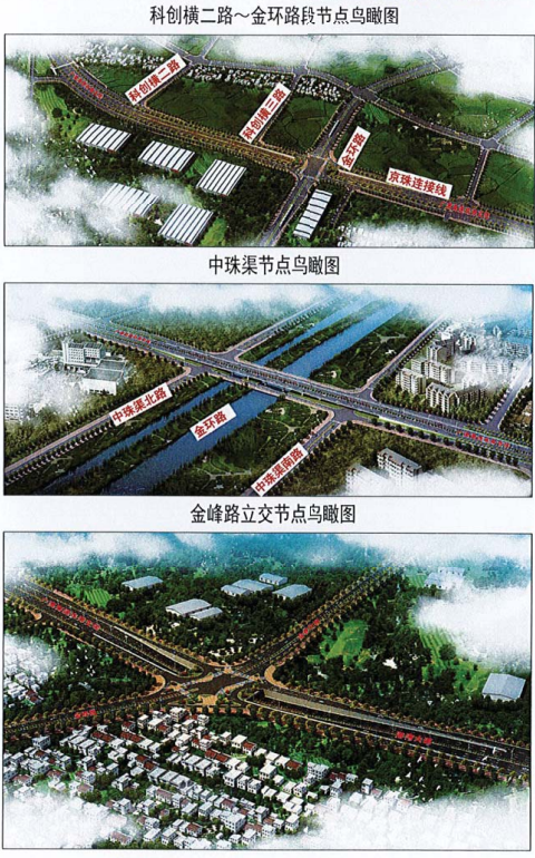 工程路线全长约4.54km。现状连接线的主线主要通过新建下穿金环路、金峰北路的隧道和建中珠渠桥实现与高新互通立交衔接,双向6车道设计车速80km/h。