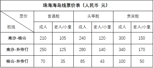 6.桂山岛往返外伶仃岛的船票价格以万山港务执行的票价为准。