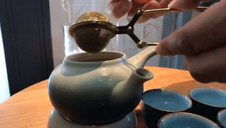同一款酒,不同的温度和喝法会有截然不同的口感。尝试了“米心酿”低温饮用,接着上来的是“米心酿”温酒饮用。古时人们喜欢温酒御寒,“晚来天欲雪,能饮一杯无”,温一壶酒,约上三两知己,把酒话心事,也是一种不错的消遣方式。九江的“米心酿”温酒饮用喝起来还有点“复杂”,甚至需要“见火”。白酒师将荞麦置于网勺内,先放进酒壶里“点三点”,拿出来,将酒体点燃,烧烤荞麦约1分钟后,将荞麦完全浸于酒中扣上壶盖闷45秒,使酒气与荞麦的香味相融。这一系列程序下来真是废不少功夫,喝酒不再是件急哄哄的事,变得慢慢悠悠,考验人的耐心。