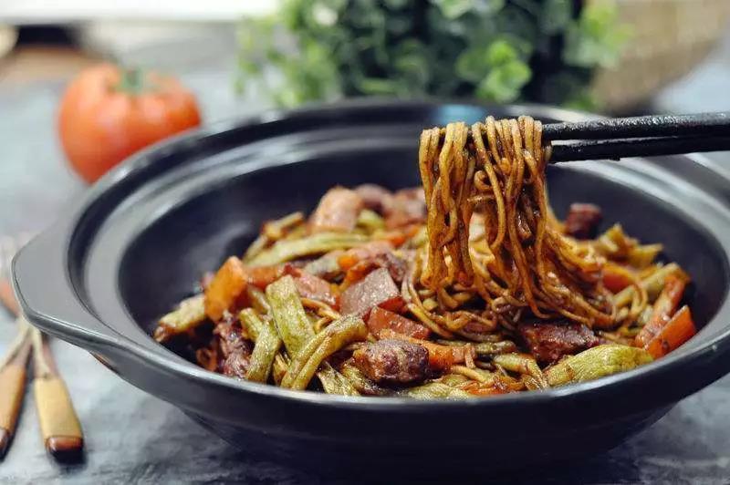 原来这“炉面”,是鲁地乡食,做法却甚为讲究。五花肉裁切成丁,红烧至八分烂,以豇豆、芸豆与生豆芽烧熟拌匀。将水面蒸熟,与炉料拌在一起,放铁锅里在炉上转烤,直到肉汁渗入至面条尽数吸收。如此出炉,味美令人食之不禁。