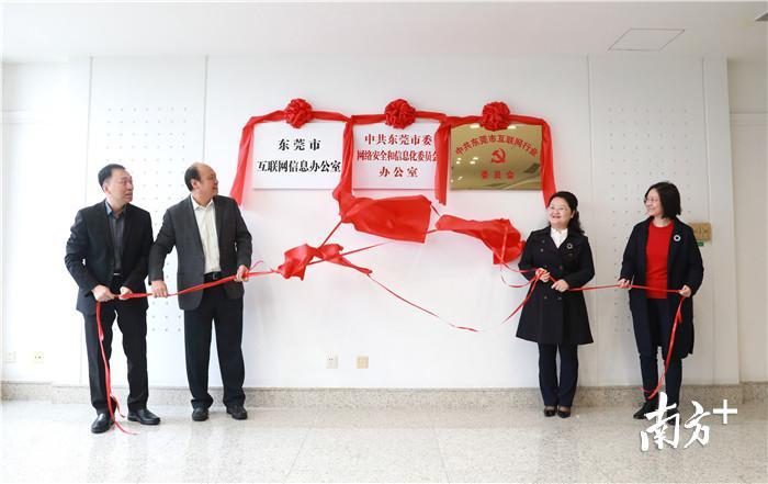 1月11日上午,中共东莞市委网络安全和信息化委员会办公室、东莞市互联网信息办公室、中共东莞市互联网行业党委揭牌仪式在市行政办事中心举行。市委常委、宣传部部长杨晓棠出席并揭牌。