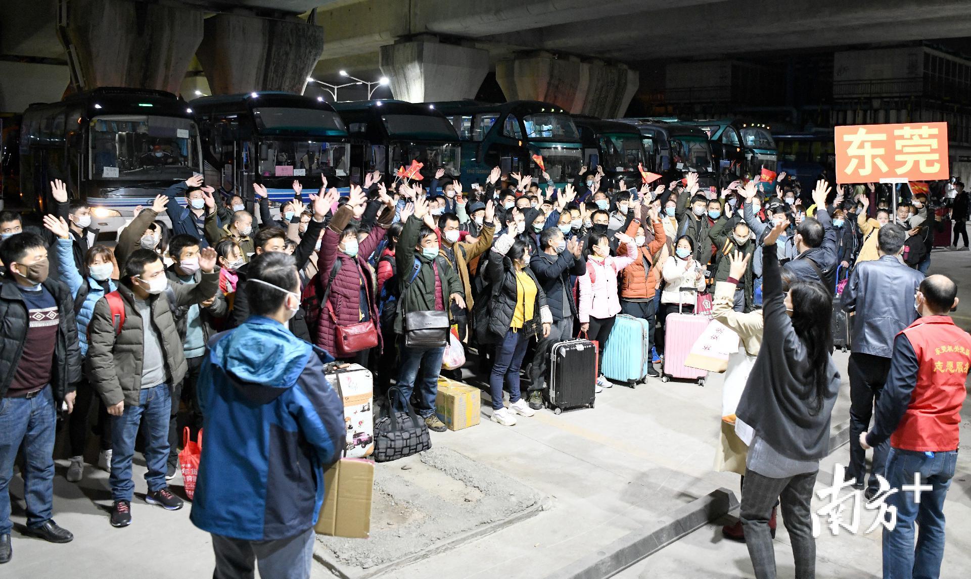 东莞市人社局主动对接对口帮扶地区和主要劳务输出地的人社部门,在摸清楚了这些地方因疫情原因暂未返莞的员工情况后,分镇街、分企业登记造册,再以包专车、专列的形式“点对点”地接回东莞,送回到各自的工作岗位。