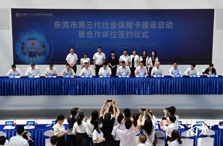 8月10日上午,东莞市第三代社保卡建设启动暨合作单位签约仪式在东莞市民服务中心举办,这标志着东莞市第三代社保卡建设工作进入了实施快车道。记者获悉,新一代社保卡将支持“多卡融合、一卡通用”,能有效解决群众“一人多卡”等使用不便问题。