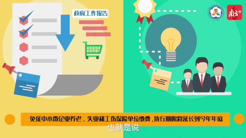 这里还要告诉大家一个好消息,今年两会政府工作报告中指出,免征中小微企业养老、失业和工伤保险单位缴费,执行期限将延长到今年年底。也就是说,在人社部门相应政策出台后,中小微企业可以再多享受6个月的减免政策红包。