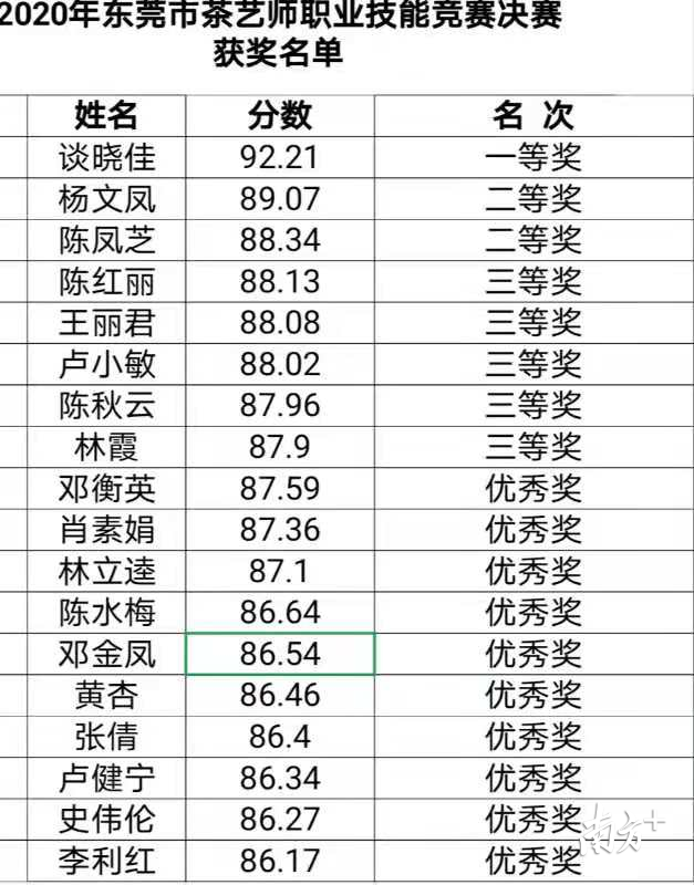 附:2020年东莞市茶艺师职业技能竞赛决赛获奖名单