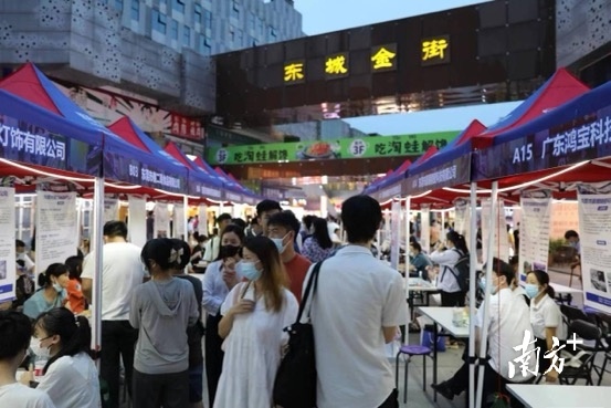 上周,洪梅、东坑、南城、东城等镇街“莞聘夜市”陆续开市,为企业和求职者送上清凉“就业套餐”,营造便捷、高效、和谐、愉悦的招聘环境。4场“莞聘夜市”汇聚了87家优质企业,提供1955个岗位需求,涵盖先进制造业、餐饮娱乐、物流贸易、文化传媒等行业,提供工程师、技术员、会计、行政、保安员等各类型岗位,仅东城一场“莞聘夜市”初步达成就业意向300余人。