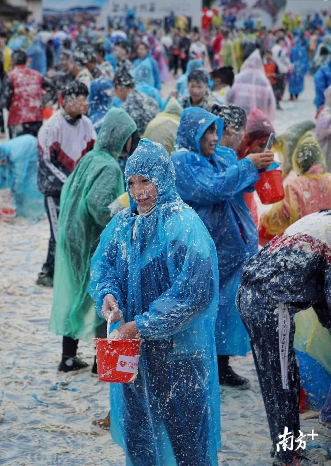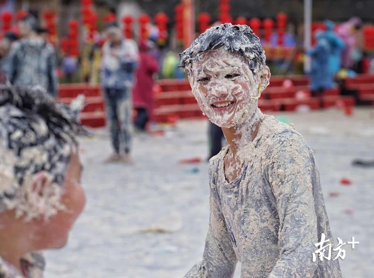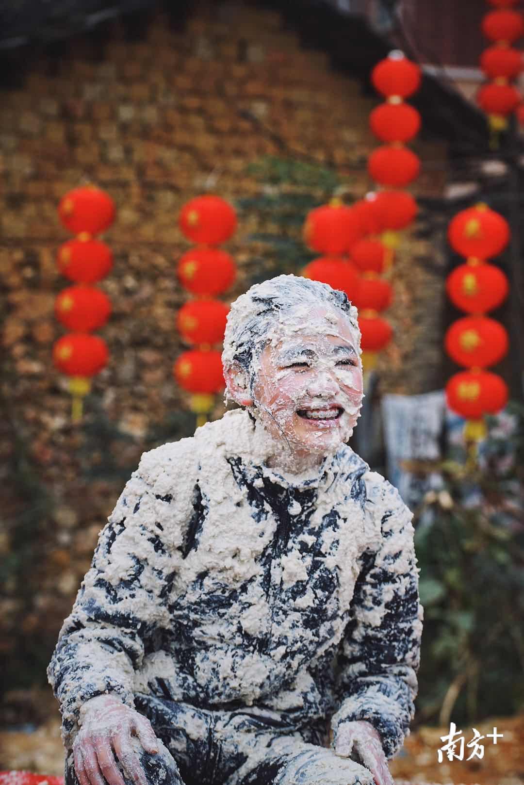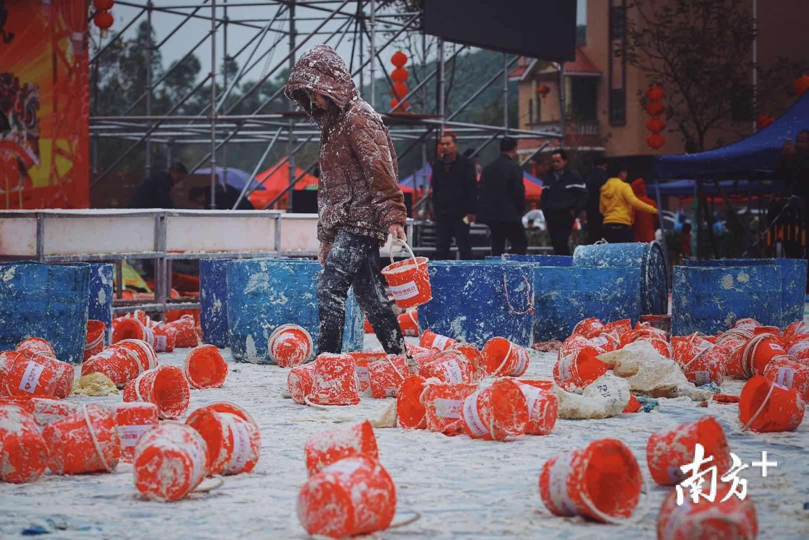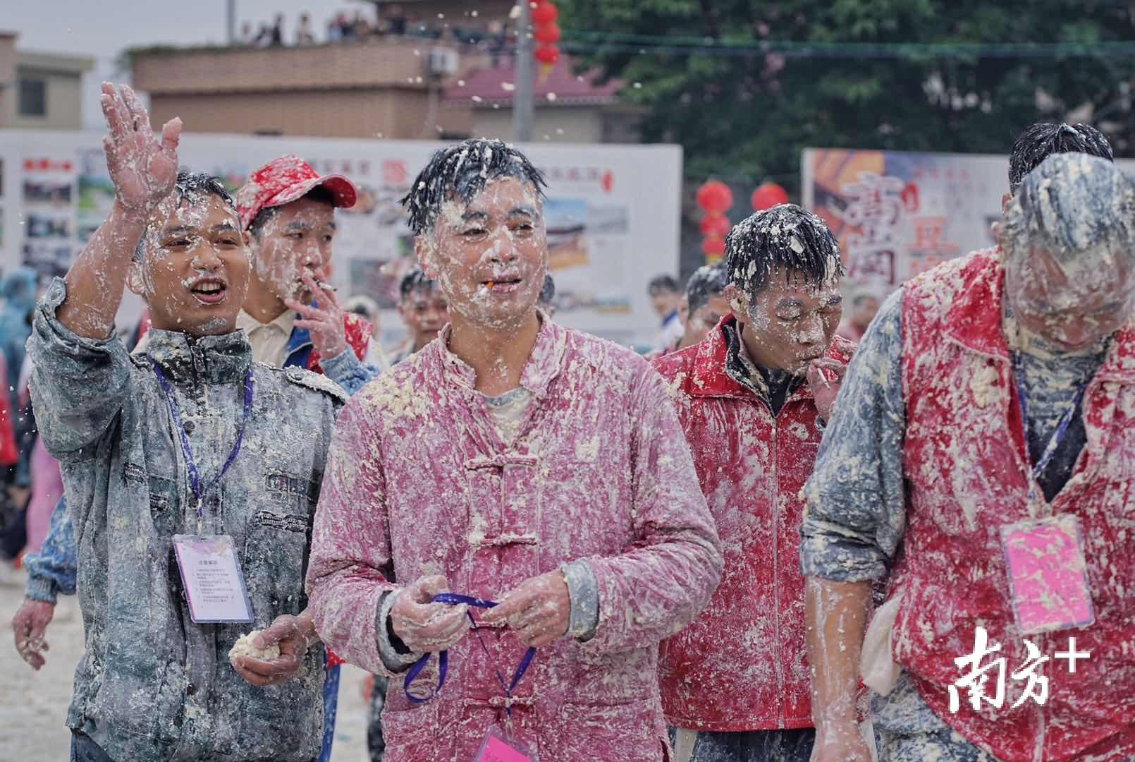 2月17日,万人相聚清远市佛冈县高岗镇社岗下村,以互掷豆腐的方式“兜福”狂欢。