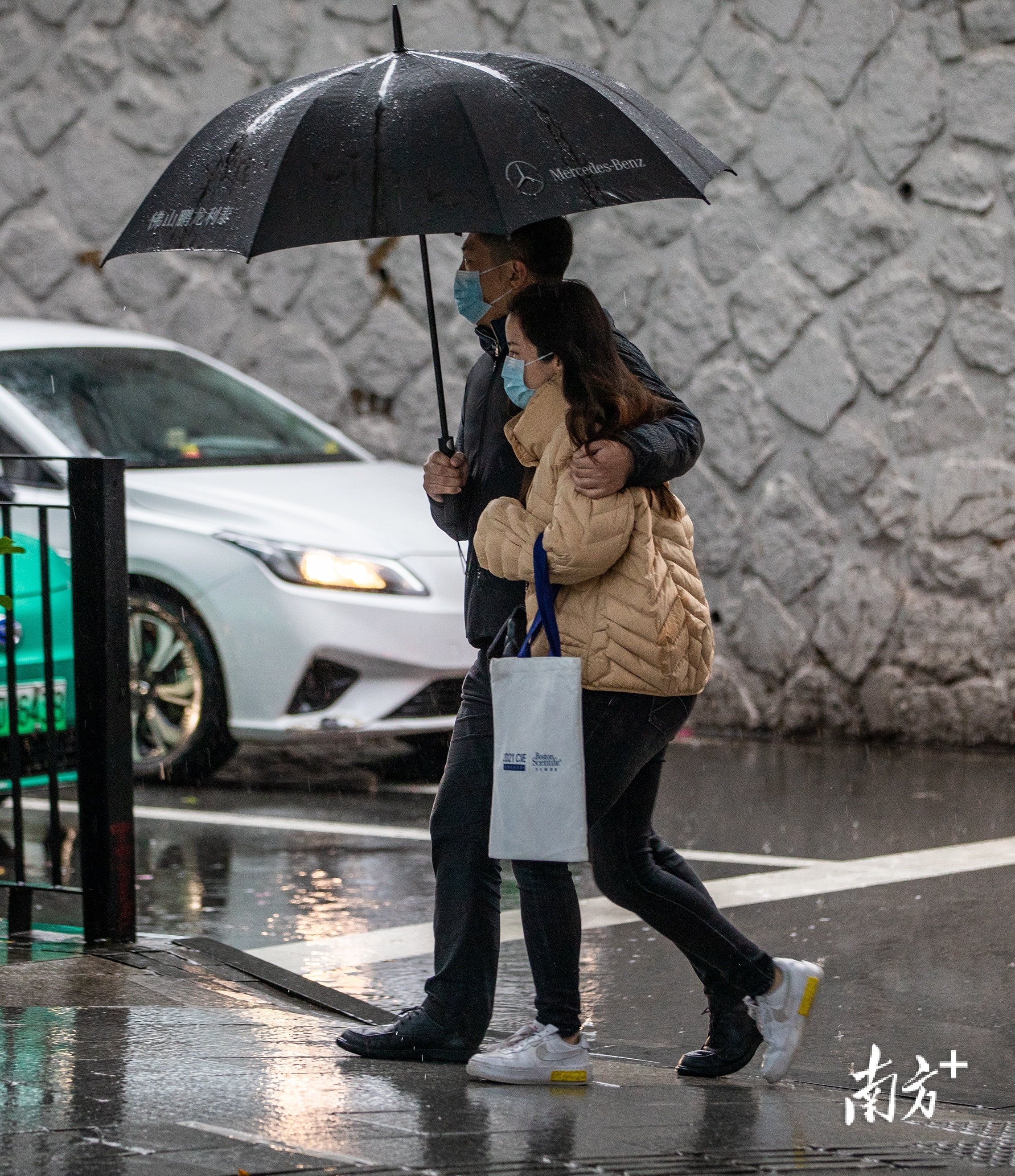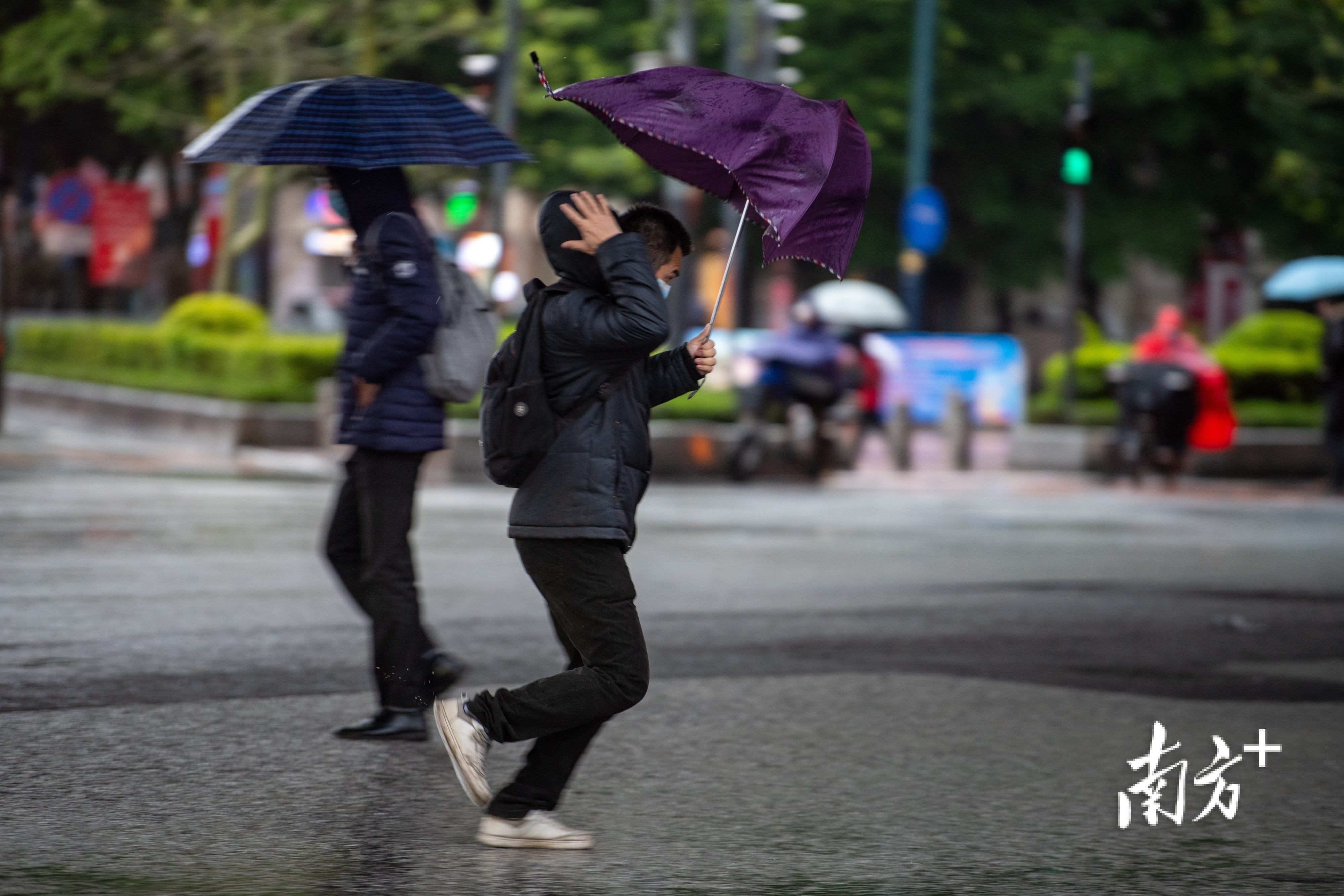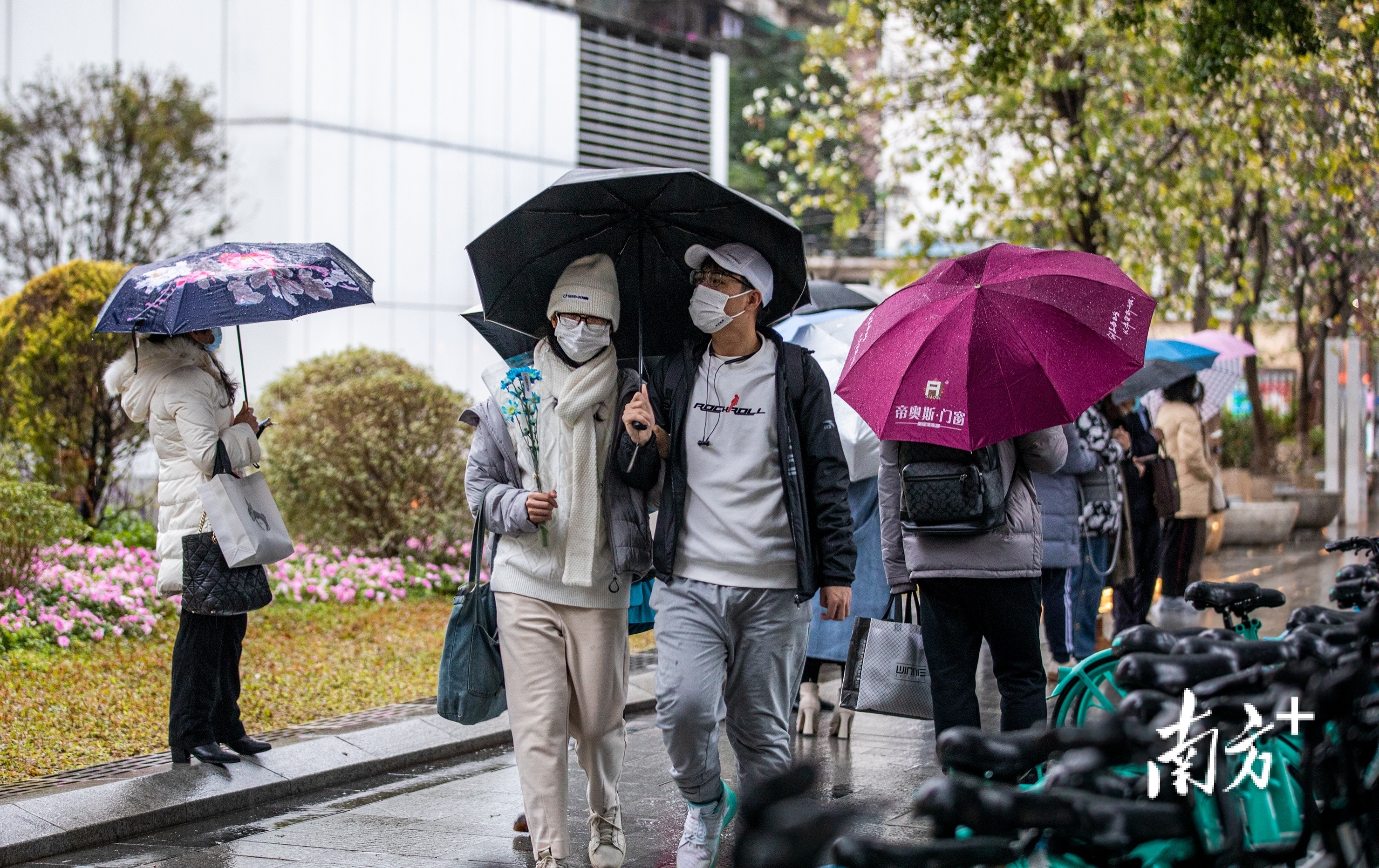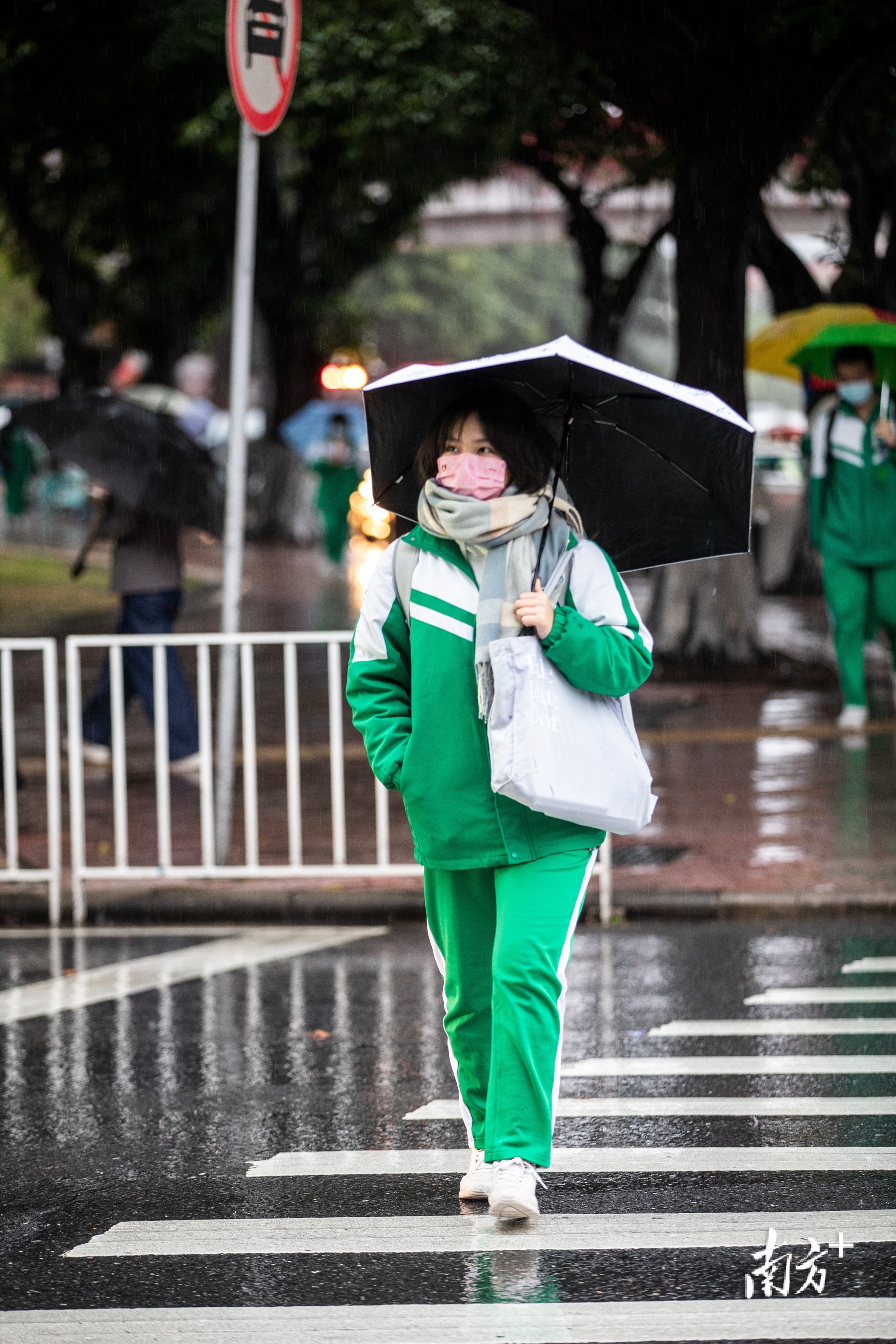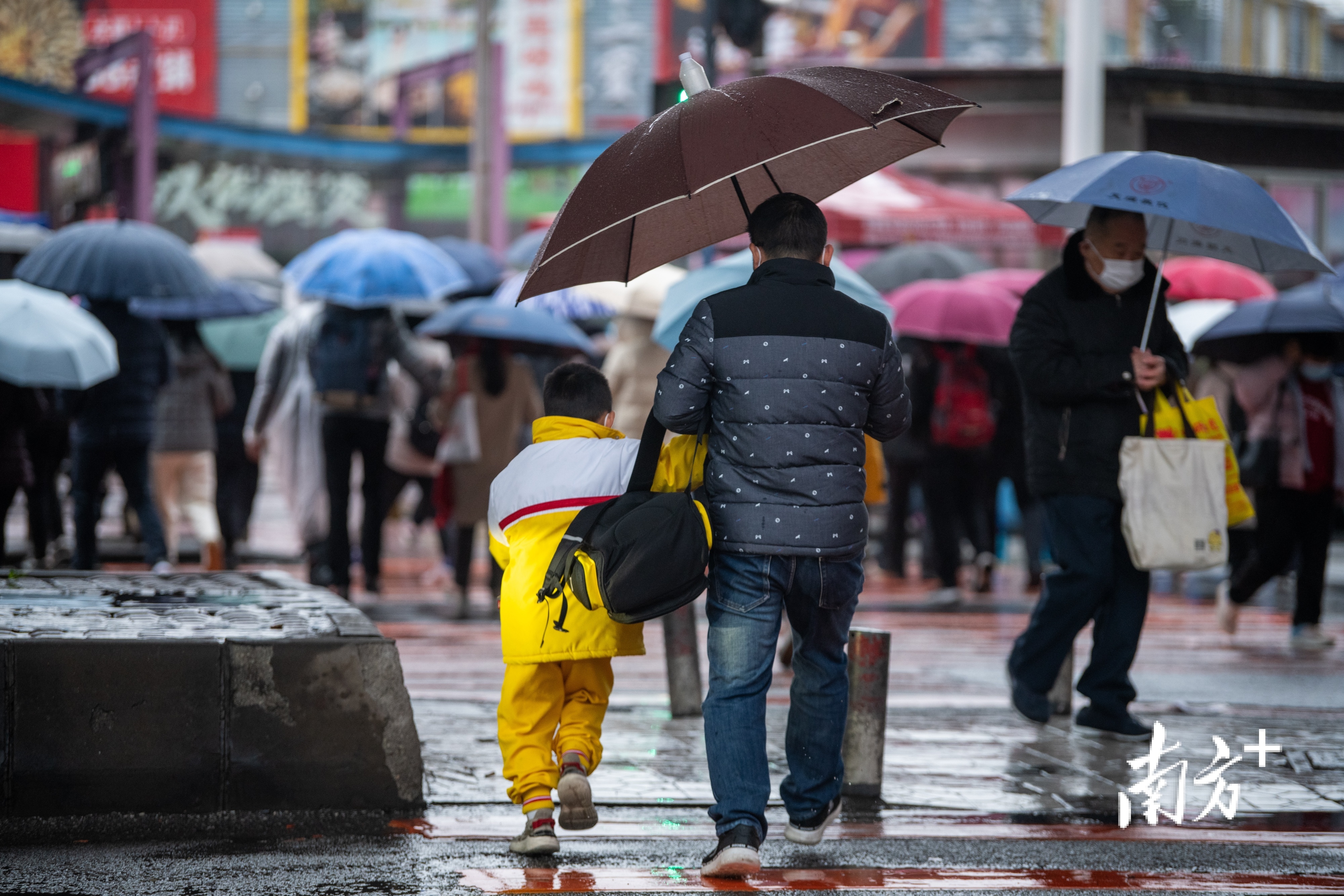 2月21日,广州市区小雨绵绵,最低气温低至4℃。东晓南路上,市民们纷纷穿上厚棉袄御寒,许多家长也给孩子戴上围巾手套以免受寒。