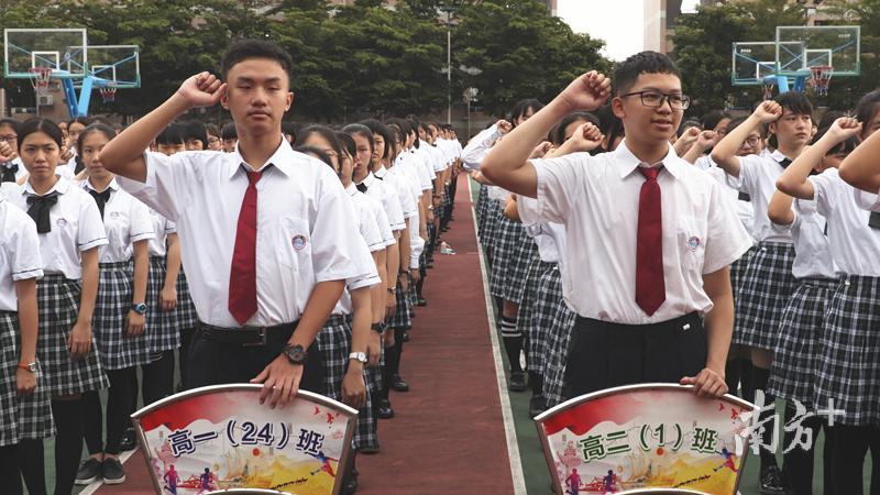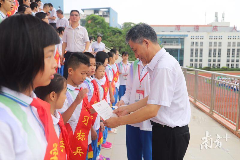 上午7点20,华南师范大学中山附属中(小)学举行新学期升旗仪式暨开学典礼,对上学期各年级、学部的学习标兵进行表彰。该校总校长刘诗雄以《使人高贵的是根植于内心的教养》为题,发表了讲话。