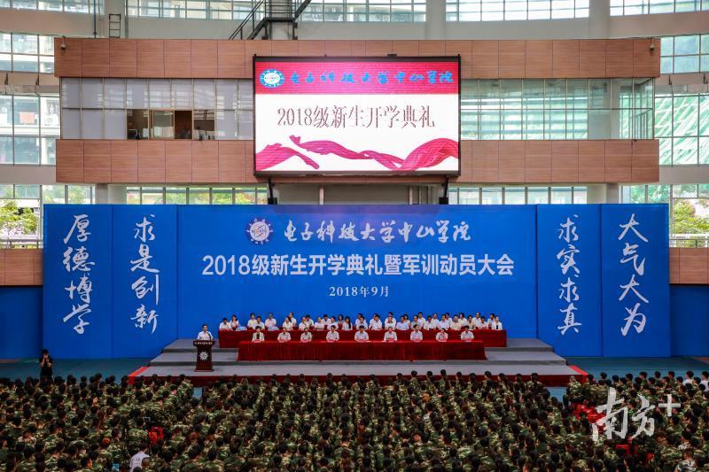 上午9点,电子科技大学中山学院举行2018级新生开学典礼暨军训动员大会。今年,该校面向全国普高招生规模首次突破5000人,创历史新高,20个省份的院校第一志愿投档率均达到或超过100%,圆满完成招生计划。其中,广东省录取人数约占录取新生总数的73.2%;中山市录取人数约占录取新生的10%。