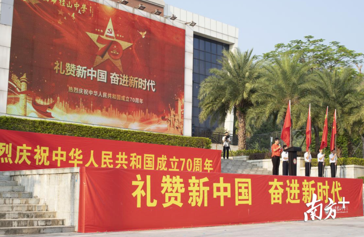 整个活动喜庆祥和,激发了桂山中学师生的爱国情感。桂山中学将以中华人民共和国成立70周年庆祝活动为契机,以建设高水平一流名校为导向,奋发有为、昂扬向上,为中山市教育事业书写最亮丽的篇章。