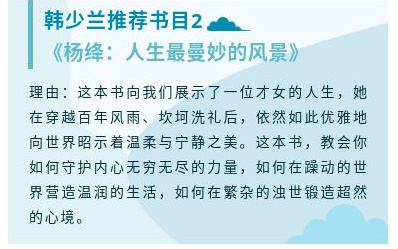 她说:“腹有诗书气自华,读书能改变容颜,提升气质。你的行为优雅或是粗鲁,与你是否读书息息相关。至于有没有时间阅读是跟你的阅读需求,阅读习惯有关的,关键在于你怎么安排。”