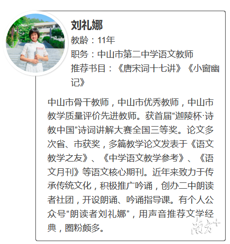 “能不能在学校微信公众号上增添一个新的栏目,主要给学生推荐书目,鼓励学生阅读?”三年前,行政办公室副主任李俊文主动找到刘礼娜,提出了这个建议。那时的刘礼娜刚好有类似的想法,一下子就激动了。最终,数位老师一拍即合,为“中山市第二中学”微信公众号开了一个新的栏目——“二中朗读者”,为老师们分享美文、朗读音频及读后感提供新平台。