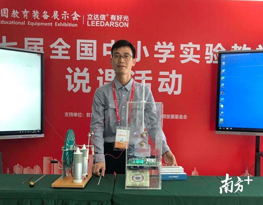 林育波在业余时间研究如何改进教材中的实验,无数次被静电电得脸发麻,手刺痛。经常,半夜有了想法,他会迫不及待盼望天亮回校尝试。最终,他的实验说课比赛获得中山市第一名、广东省一等奖、全国金奖,也因此被评为“2019年全国中小学实验教学能手”。