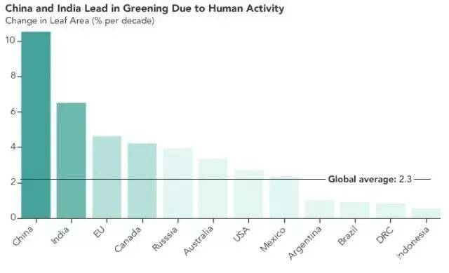 21世纪初至今,全球绿化面积增长了5%