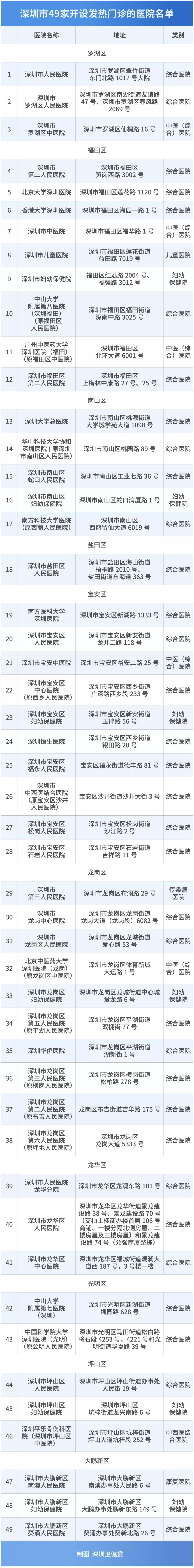 深圳49家发热门诊24小时值班!