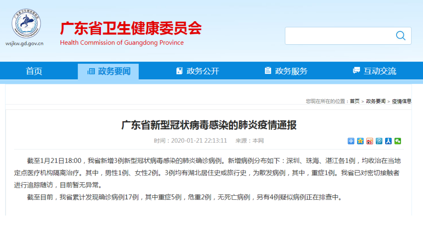 截至21日18时,广东省已确认17例新型冠状病毒感染的肺炎确诊病例。