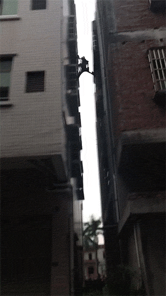 11月28日,石碣一名2岁多的小女孩头部被卡在一出租屋四楼的防盗网上,身体悬空,千钧一发之际,一位“托举哥”不顾危险,果断从五楼阳台爬下,一手扶着旁边窗户栏杆,一手把小女孩托住。