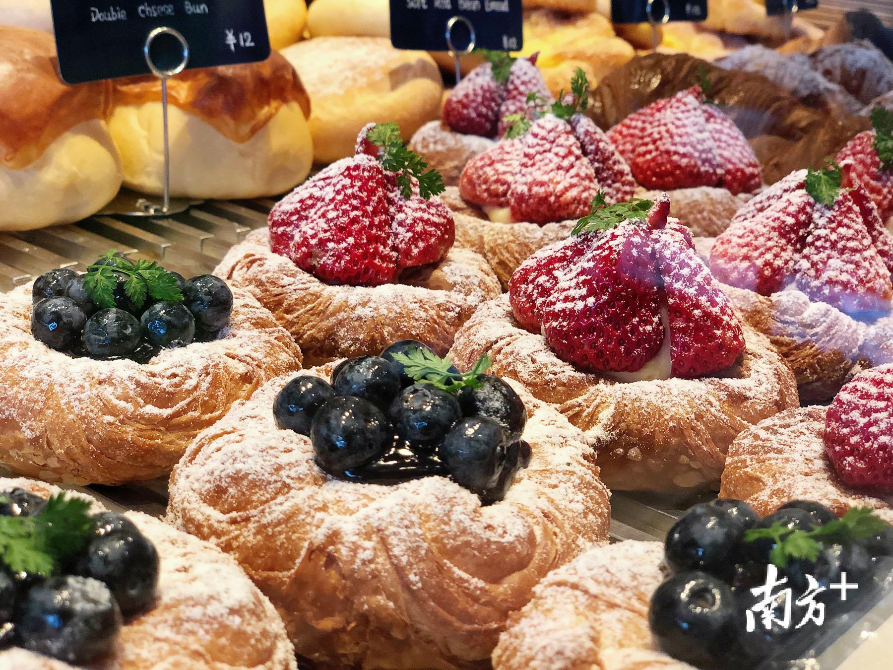 草莓丹麦酥和蓝莓丹麦酥。