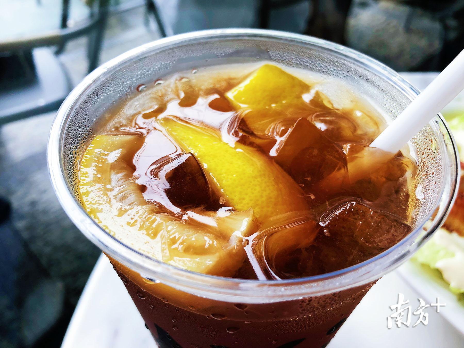 这里的咖啡和茶品很多,招牌的冻柠檬红茶特别推荐,不同于很多柠檬茶里使用的片切柠檬,这里是用成块的柠檬挤压出汁,所以茶中的柠檬味很足,有着柠檬微微的酸涩,无论是吃蛋糕还是简餐,一杯颜色美丽的柠檬茶非常解腻。