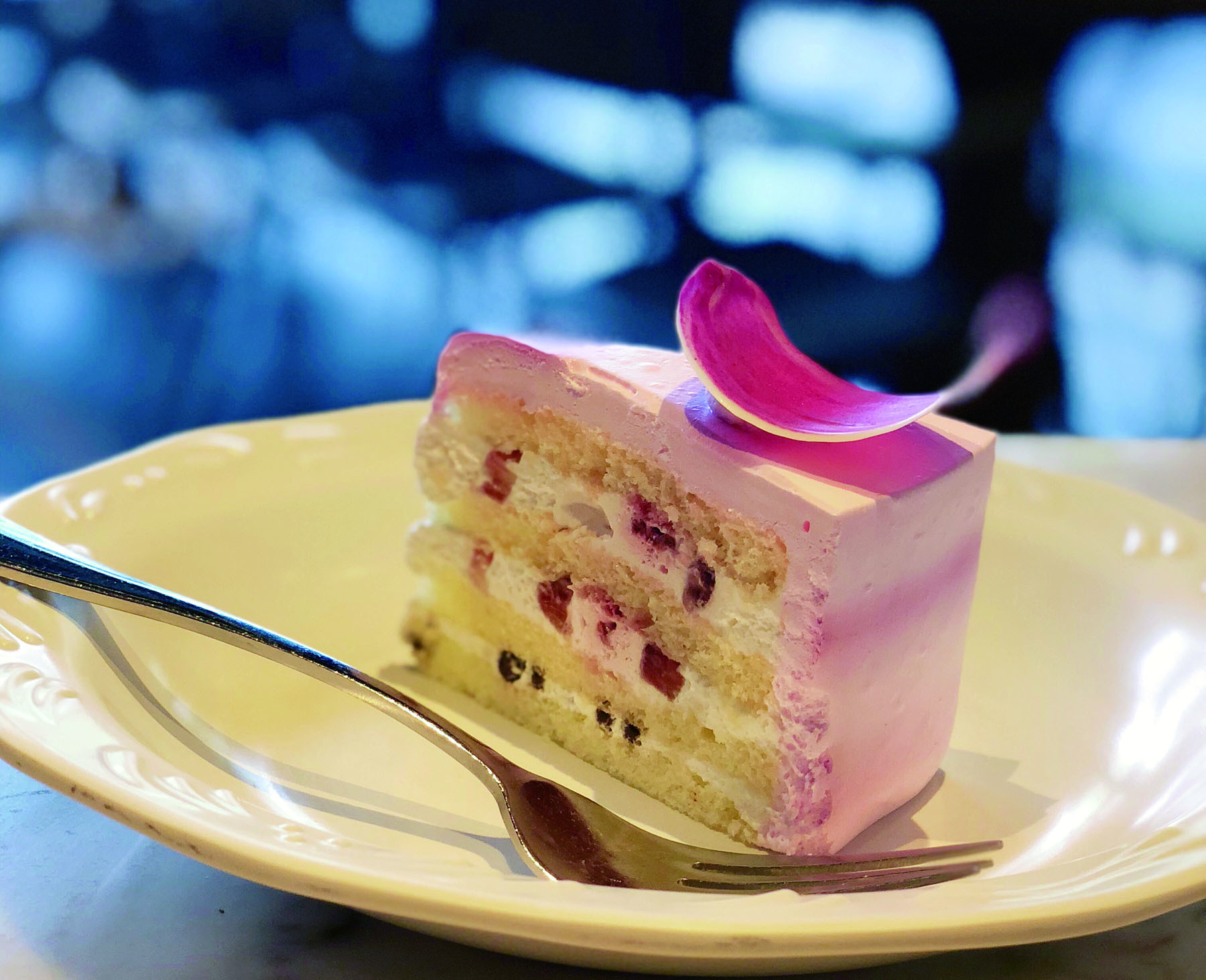 刚刚为母亲节推出的命名为“sweet heart”的蛋糕,铺在顶层的花瓣,蜂蜜混合酸奶的细腻口感,草莓以及红桑子粒的点缀,还有令人惊喜的巧克力脆脆藏在蛋糕里。