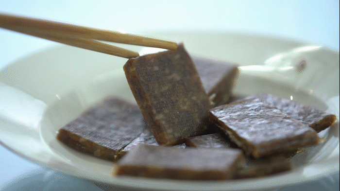 因此,澄海的猪头粽肉质不松也不黏,既韧又脆;入口不咸不淡,甘饴香醇,有猪头肉的Q弹质感,也有牛肉干的回味。无论是当配菜还是零食,都别有一番风味~