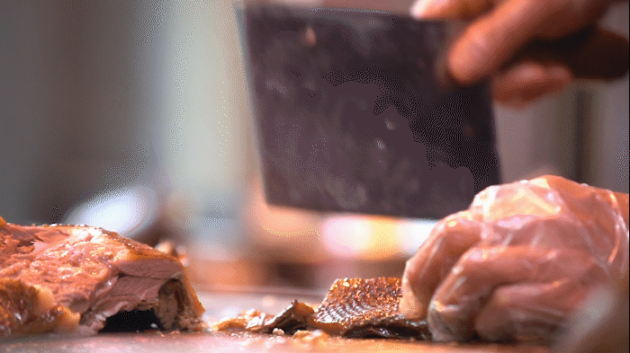 整鹅在祭拜完毕之后方可斫开斩件,剖斩鹅肉时讲究刀工利落切整片薄,卤汤可淋可蘸。
