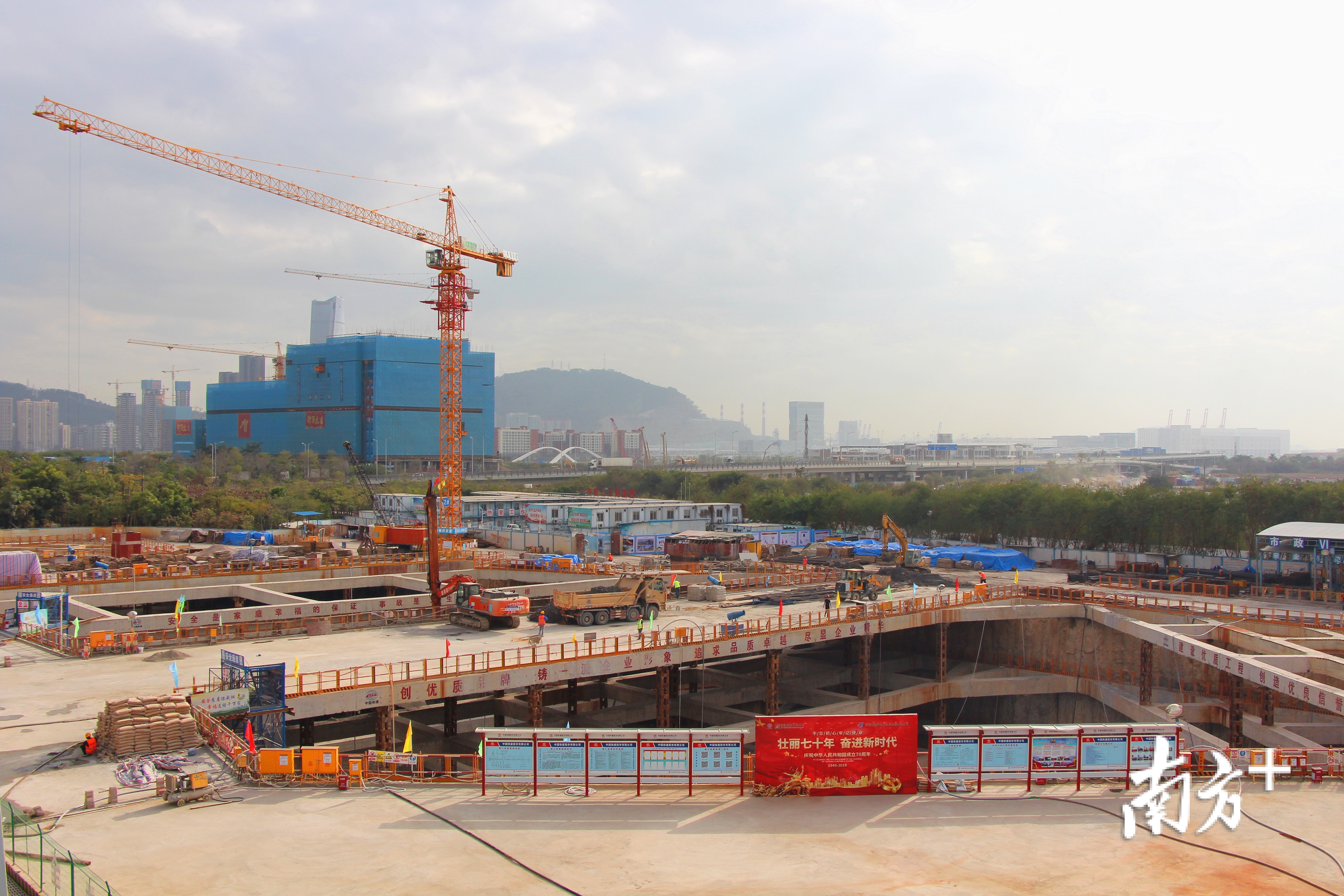 2019年6月8日项目完成桩基工程,2019年12月30日完成土方开挖工程,2020年4月8日完成基坑底板浇筑。至此,5号冷站工程风险最大、施工最难的“咽喉”部位圆满完成。项目技术团队撰写的《临海近桥墩基坑抗变形围护体系施工工法》也荣获2019年广东省省级工法等多项荣誉。