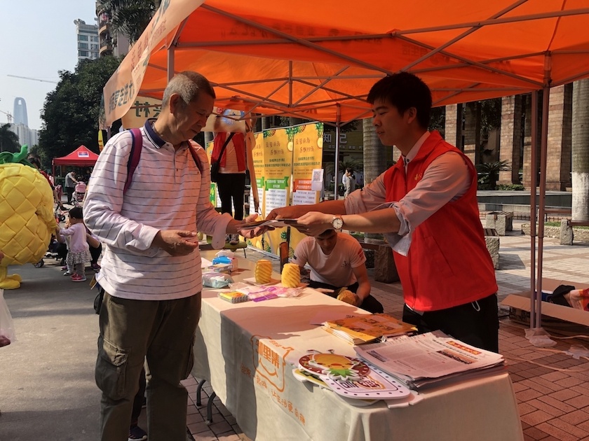 “徐闻菠萝进社区”体验活动启动啦!3月30日、31日徐闻菠萝连续两天走进合生骏景花园和珠江帝景紫龙府,通过免费品鉴菠萝和多种多样的游戏环节,为社区居民奉献了一道形式鲜活、内容丰富的品牌文化大餐。活动直播观看人数超十万,现场累计互动人数过万,让更多的一线消费者认识了徐闻菠萝。