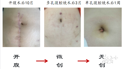 经脐单孔腹腔镜目前是国际最前沿的微创技术,具有术后疼痛轻微,快速康复,住院时间缩短,降低经济成本等优势,得到国内外专家的认可。“单孔腹腔镜手术既保证了肿瘤治疗的疗效,又兼顾了患者所期许的‘无痕之美’,更大程度契合了外科快速康复的理念,将成为妇科手术的未来趋势。”孙力说。