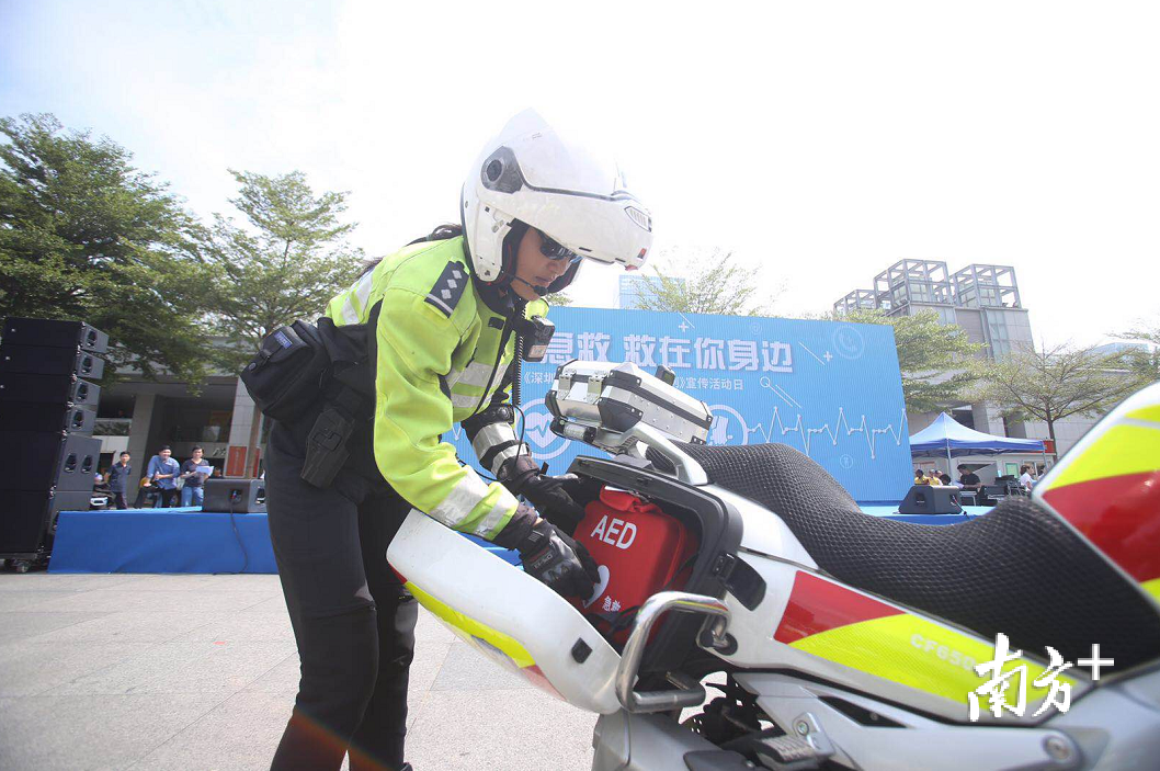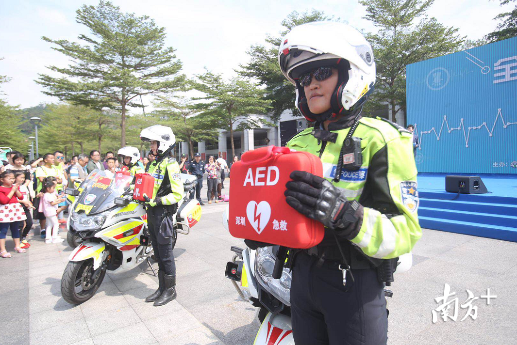 此前,“深圳地铁集团”下辖的站点已实现“站站都有AED”,可是穿梭在这个城市的交警铁骑却只有技能还未配置设备。